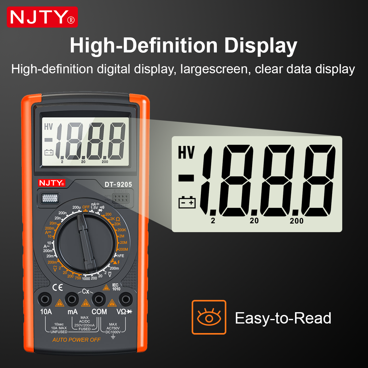 NJTY DT-9205 AC/DC 20A Digital Multimeter