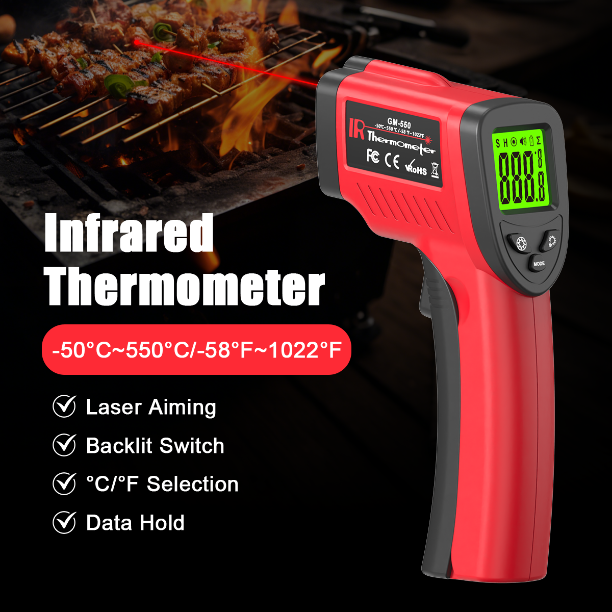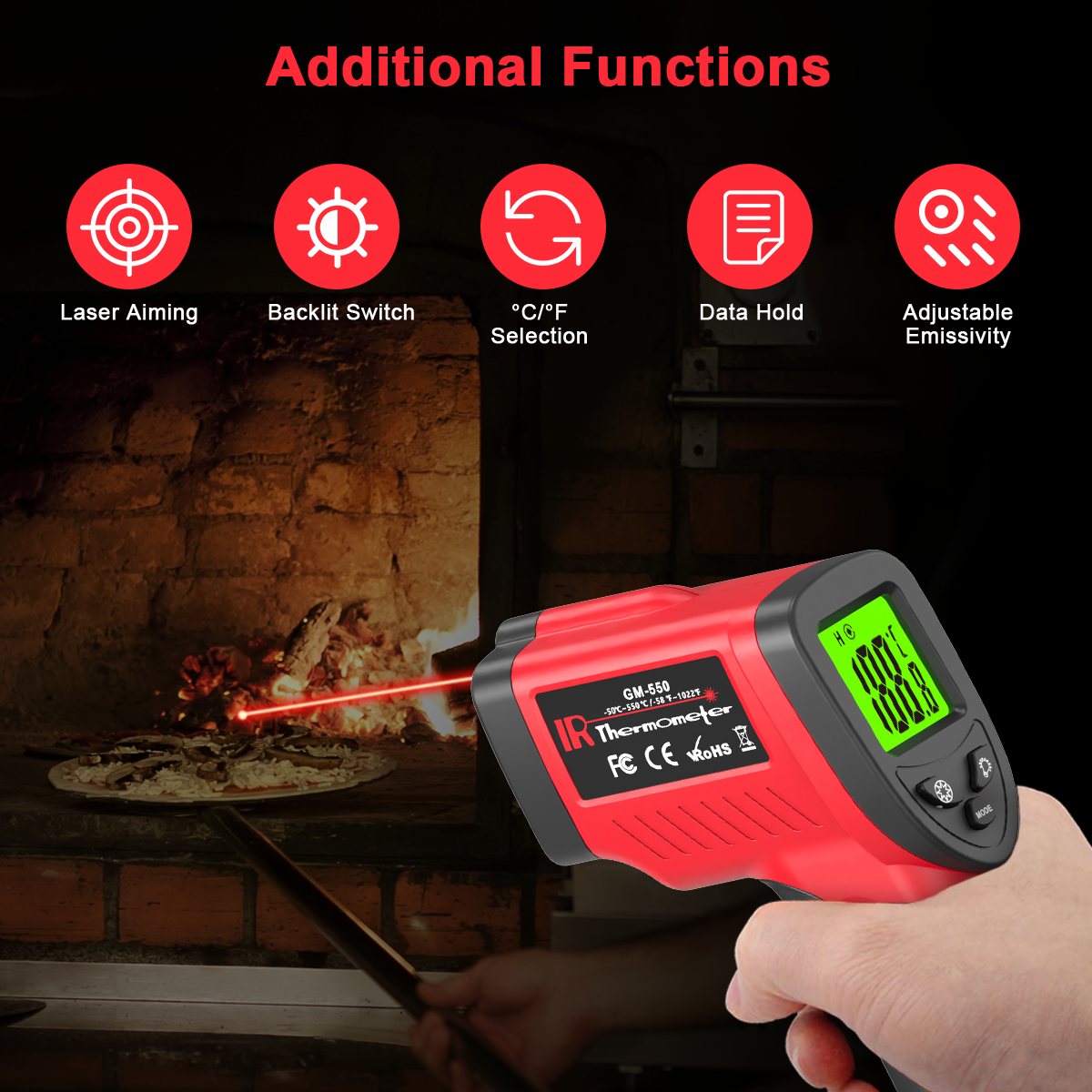• Wide & Precise Temp Range:-50°C to 550°C (-58°F to 1022°F), ideal for oil/water temp, cooking, industry, auto repair.
