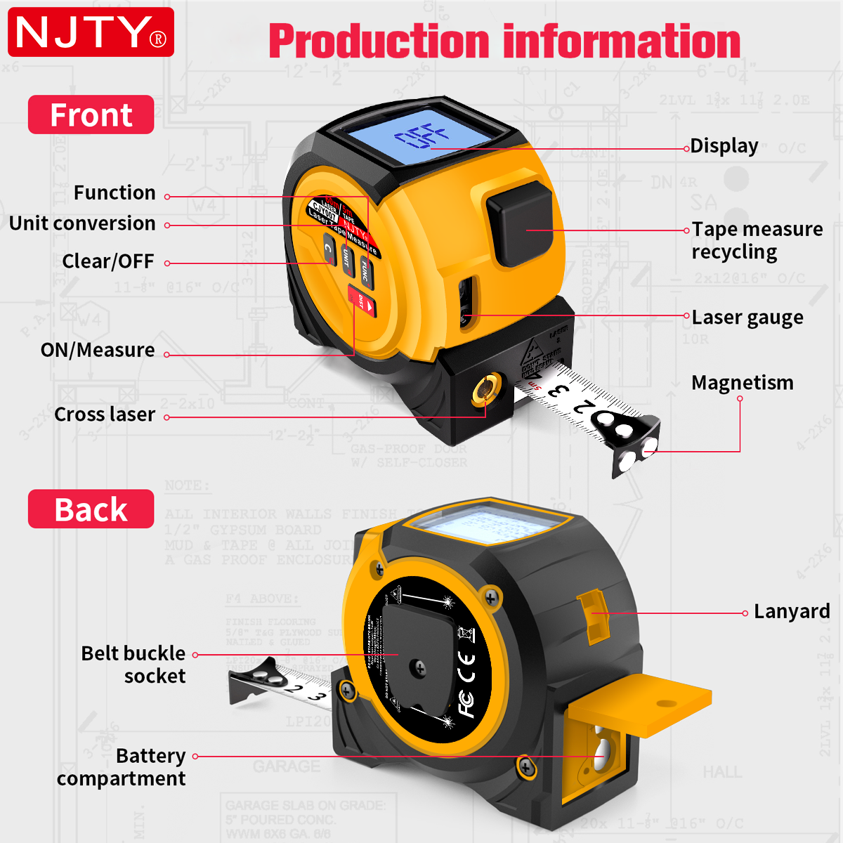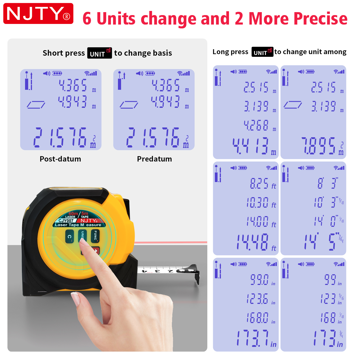 NJTY CJY007 Laser Tape Measure 197Ft/60M