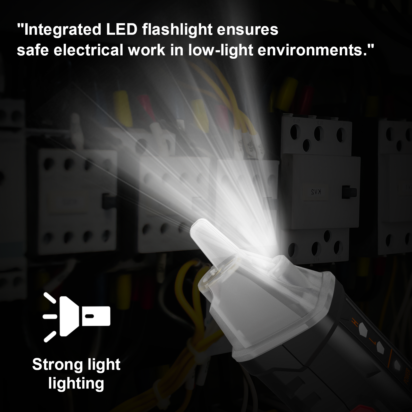 • Additional Functions: Includes NCV detection, continuity test, buzzer alert, laser pointer, and flashlight.